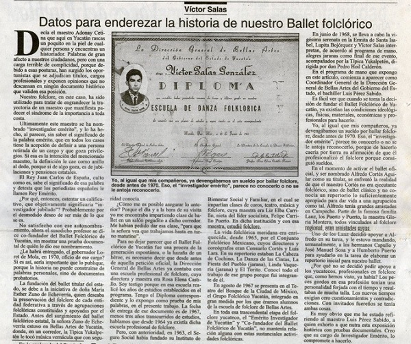 Por considerarla como una evidencia histórica de la Danza en nuestro estado de Yucatán, reproducimos para nuestros lectores el bien documentado trabajo de investigación de uno de sus puntales, el Maestro Víctor Salas, tomado de un medio local.
