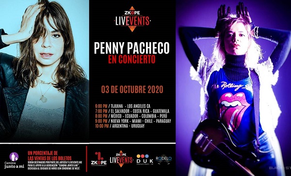 Penny ofrecerá su primer concierto online el sábado 3 de octubre, donando una parte de lo recaudado a la fundación “Camina Junto a Mí”, dedicada al cuidado de niños con síndrome de West y Lennox (caminajuntoami.com).
